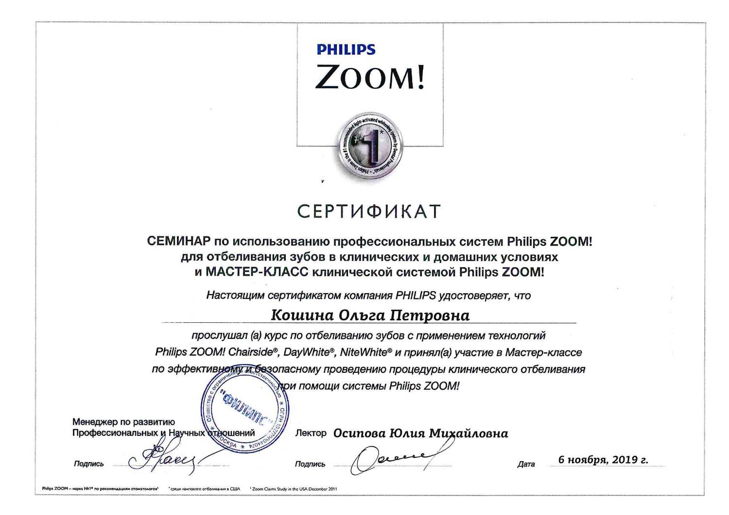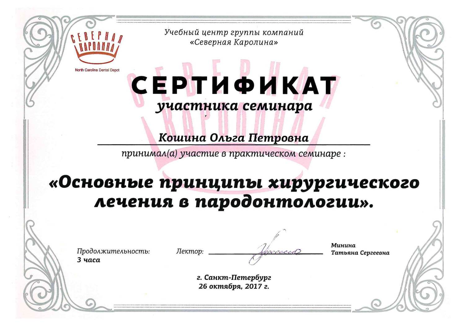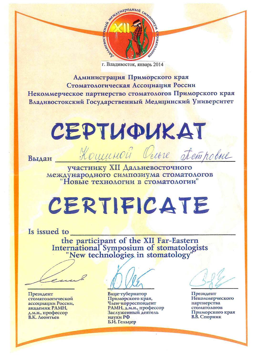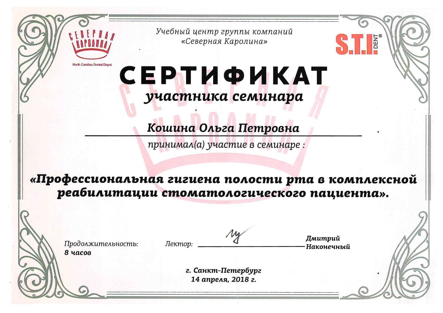 Регулярно посещает семинары, курсы переподготовки и повышения квалификации по специализациям: стоматология хирургическая и стоматология терапевтическая.